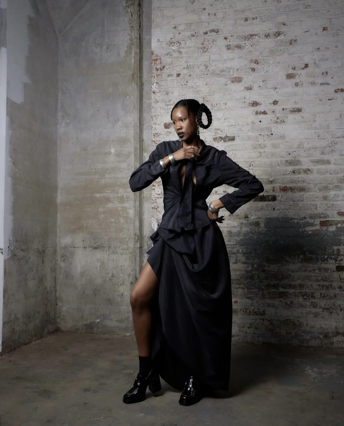 Merón Studio's first capsule (March 2024), is crafted entirely from dead-stock fabrics. It features a blend of draped and more structured silhouettes, designed for women with a dynamic, unbounded, and unconventional sense of style.